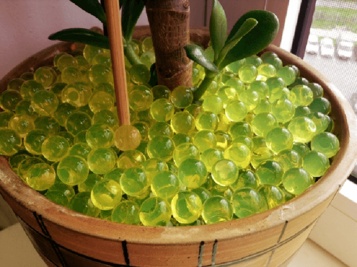 Спеціальні речовини, начебто гідрогелю або гранульованої глини добре підійдуть для рівномірного зволоження грунту в горщику. Вони відрізняються швидким поглинанням води і поступової рівномірної її віддачею. Інструкція застосування: