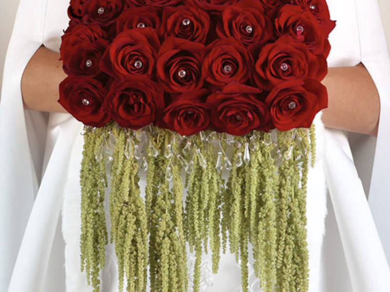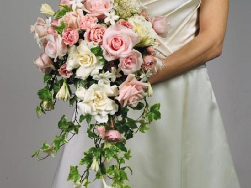 - Букет-каскад. Набирає популярність, але зустрічається рідше, ніж перший варіант. Для нього підбираються квіти з довгими стеблами. Вони як би спадають з рук нареченої. Такий аксесуар струнким і як би витягає зростання. Підходить для суконь, облягаючих силует.