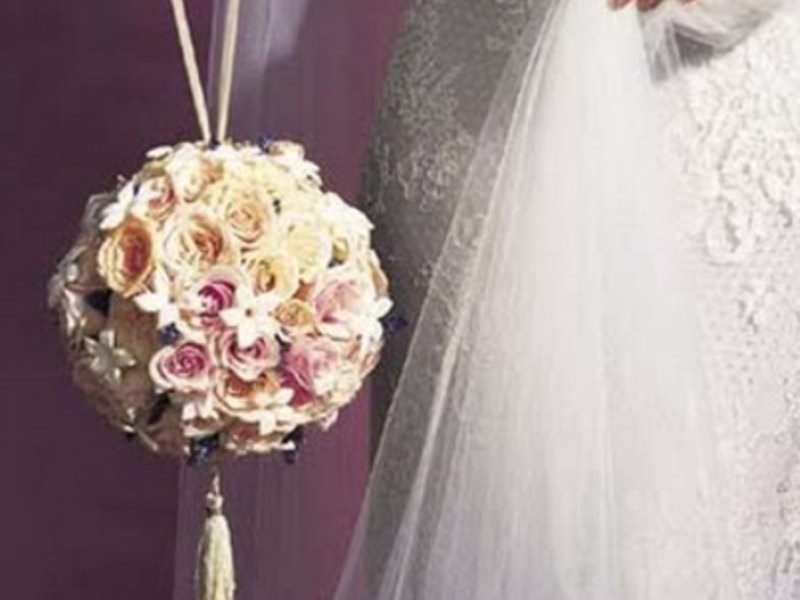 Буде залежати від самої нареченої і пишності сукні. Якщо приталену сукню, то великий букет краще не робити, він буде закривати всю наречену. Велика композиція підійде для багатошарового об’ємного сукні. Наряд з великою кількістю страз і намистин доповнюють аксесуаром без яскравих прикрас.