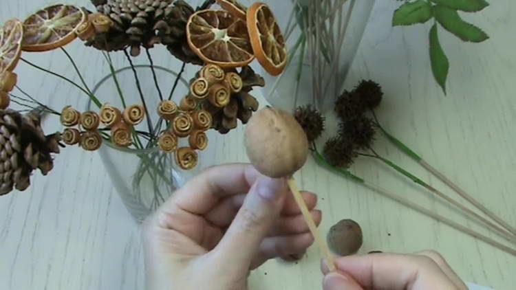 - На дерев’яні шпажки насаджуємо 7 волоських горіхів.