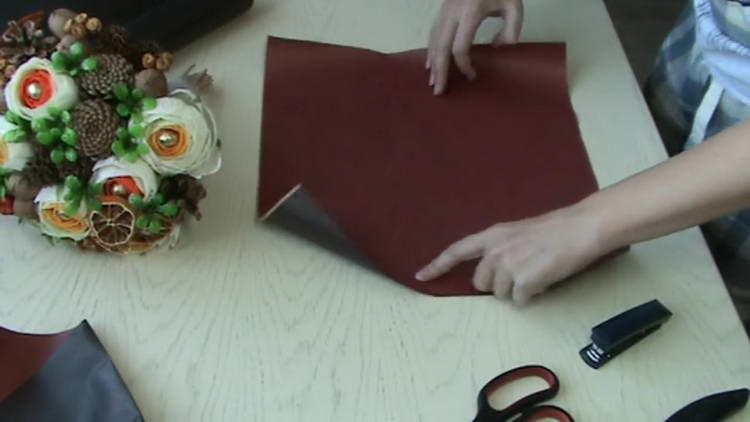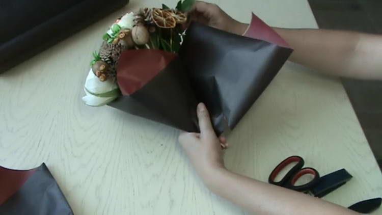 - Оформлення букета завершуємо пакувальної папером – вирізаємо 4 квадрата 35х35 см.