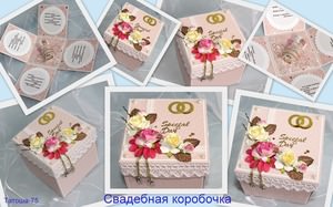 Коробочка з голубами відмінно підійде для весілля. Її можна подарувати молодятам, сховавши в упаковці гроші. В коробці можна написати побажання, додати прикраси з полімерної глини (майстер-класи з виготовлення предметів з цього матеріалу можна знайти в інтернеті) або приклеїти об’ємну листівку. Оформлення обмежується лише фантазією майстра.
