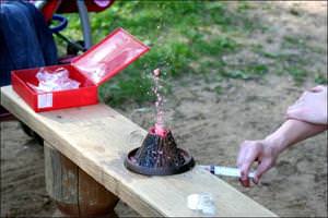- Приготувалися випробувати свій вулкан? Попередьте дітей, що це видовище не для людей зі слабкими нервами і тому треба бігти на вулицю. Насправді ж, ви підстрахуєтеся від набризкування фарбою своєї статі і важливих речей.