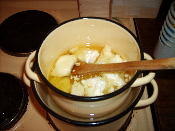 - Візьміть два жароміцних судини різного розміру, щоб легко поміщався в інший. В нижню ємність наливаємо трохи води і ставимо на вогонь.
