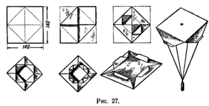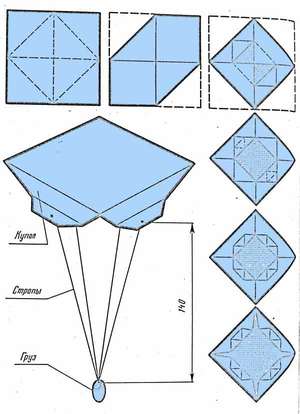 - Зігнувши квадрат по діагоналі, вийде короб, який буде організовувати парашут.