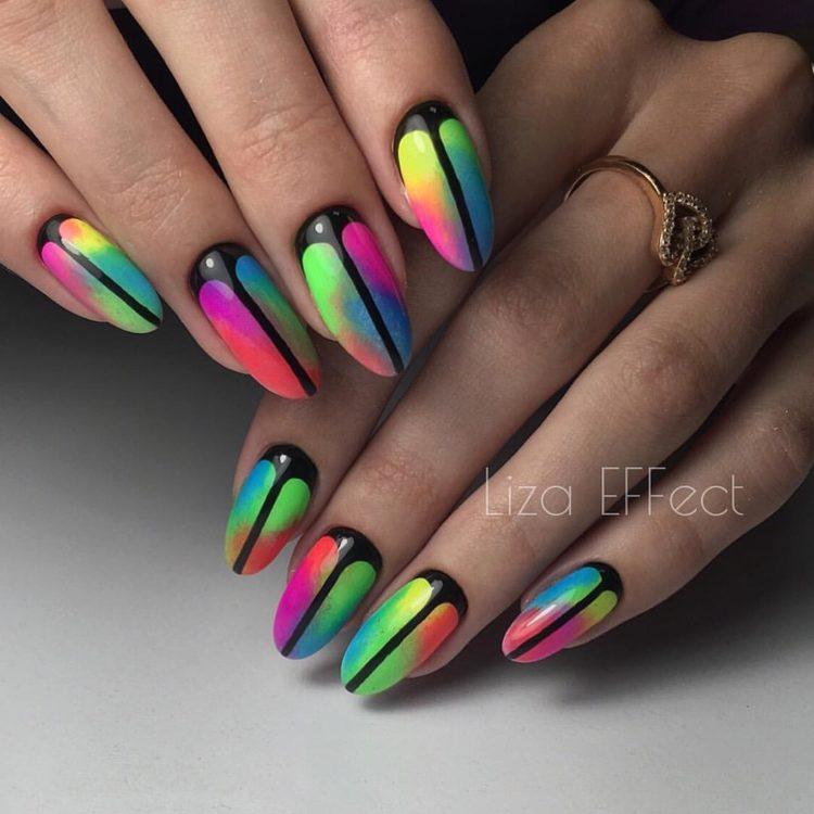 Безпрограшний кольоровий манікюр в яскравому виконанні можна створити в місячному дизайні, градієнт техніки, з допомогою техніки наклейки і втирки. Різнобарвний манікюр (поєднання кольорів можуть бути найрізноманітніші) повинен завжди піднімати вам настрій.