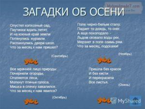 Прочитавши всі загадки про осінь для школярів 7 років, ви зможете придумати домашнє завдання для них. Кожна дитяча прислів’я має свій сенс. Вибирайте загадки про осінь для дітей, щоб розважити весь клас.