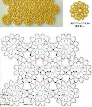 Таким чином виходить суцільне мереживо, пов’язане з повторюваних мотивів. Області застосування такої техніки вельми обширні: цей спосіб використовують і коли в’яжуть гачком скатертини, або пледи для новонароджених, годиться він і для в’язання одягу.