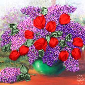 Якщо чітко покроково слідувати схемі і уважно ознайомитися з описом вишивки, починаюча рукодільниця легко впорається з роботою і зможе створити дивовижну картину, вишиту з атласних стрічок. Самий популярний мотив, який зустрічається у більшості майстер-класів – вишивка стрічками бузок. Шикарні грона бузку, зібрані в пишний букет, прикрасять і настінне панно, і подушечку-думочку. Якщо вам набридло вишивати гладдю і хрестиком — саме час починати освоювати вишивку стрічками.