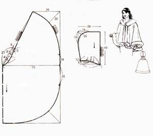 Викрійки штанів прямокутної і округлої форми представлені нижче на малюнках. Довжину можна вибирати на свій смак. Для новачків краще вибирати моделі без додаткових елементів. Якщо пончо буде з капюшоном, то він викроюється окремо і потім пришивається до виробу. Пальто жіночі округлої форми з хутряною обробкою, для якої підійде натуральний хутро.