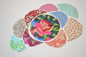 Квіткове панно робимо з яскравих різнокольорових обрізків. Фон можна зробити з шматка ситцю за забарвленням, як полянка. Рамку для нього вибирають в залежності від теми малюнка: овальна, квадратна, прямокутна, кругла. Для круглого панно іноді вибирають дерев’яні п’яльця. На картон або фанеру потрібного розміру і форми натягують і приклеюють ситцевий шматок.